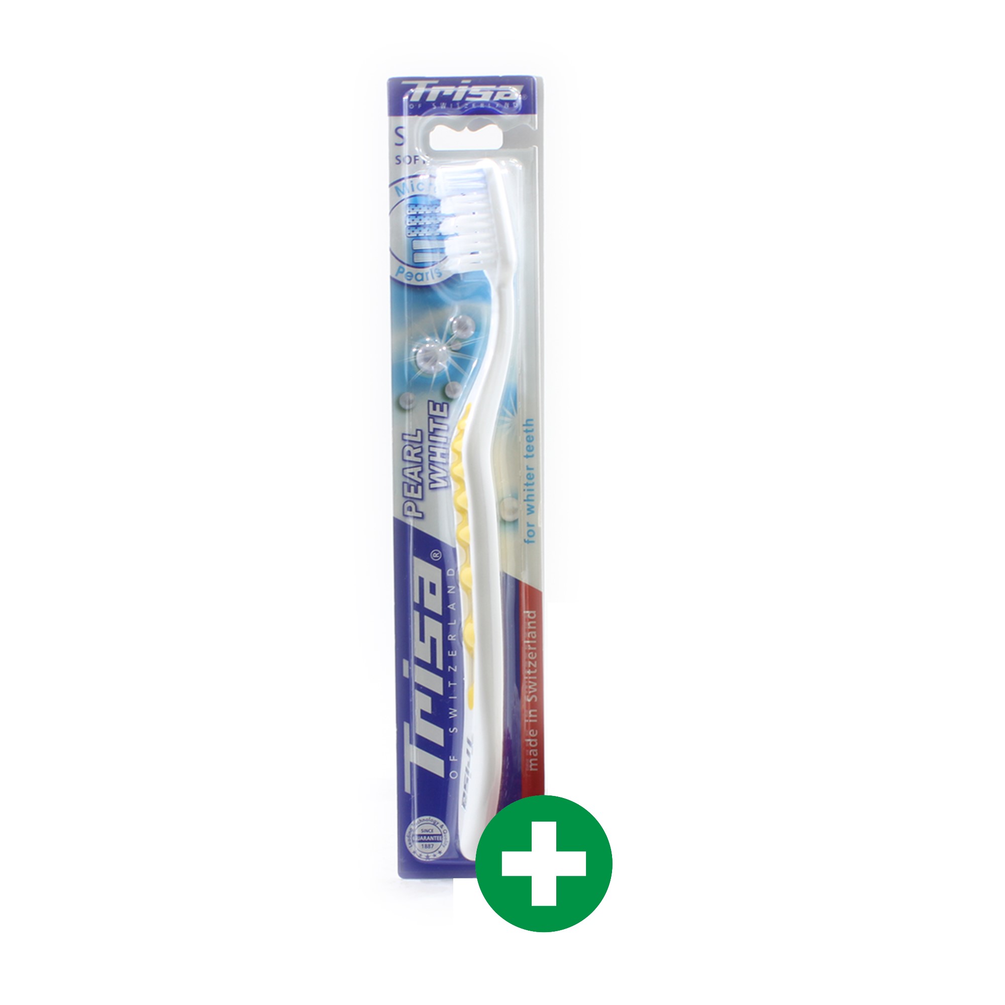 مسواک پرل وایت تریزا با الیافی مناسب برای سفید کردن دندان ها است که در آن ها از مروارید های بسیار کوچک تمیز کننده آبی رنگ استفاده شده است که به سفید کردن و از بین بردن زردی دندان ها کمک می کند. طراحی موجی شکل دسته مسواک به منظور عدم لغزش مسواک هنگام استفاده می باشد.