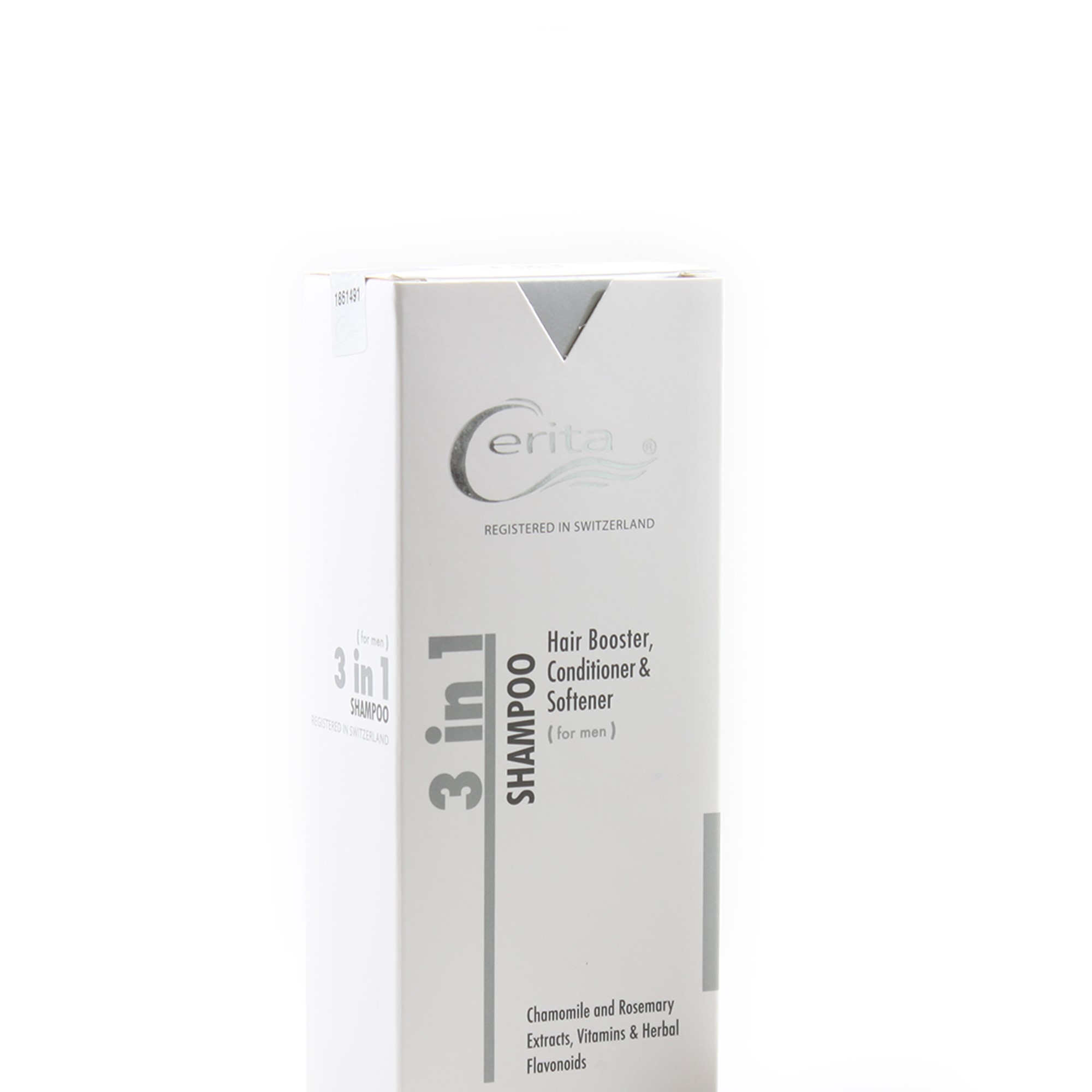 این محصول با توجه به اینکه آقایان بیشتر در معرض انواع آسیب های مو از جمله کدر شدن مو، آسیب های ناشی از اشعه خورشید و آلودگی های محیطی می باشند به همین دلیل شرکت سریتا شامپو 3 در 1 را با ویژگی های خاص برای آقایان طراحی و معرفی می نماید.