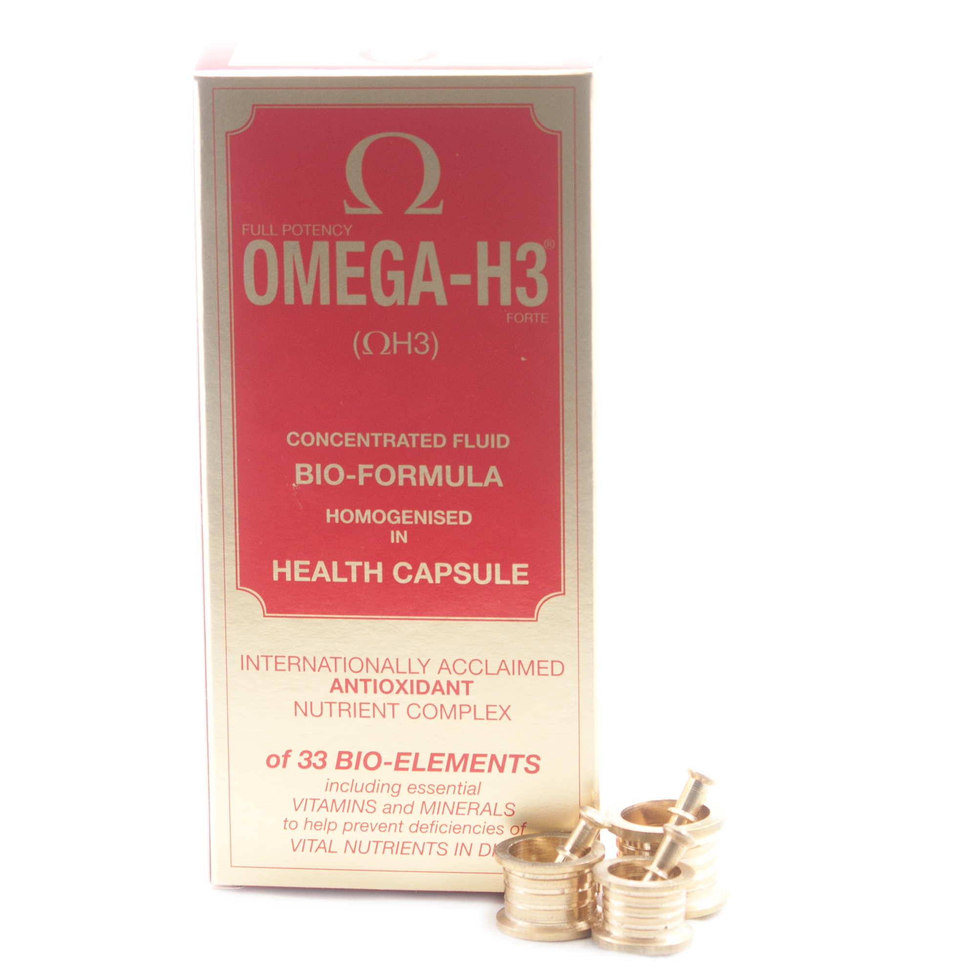 امگا-اچ۳ شامل امگا ۳ و روغن کبد ماهی به همراه ۳۳ عنصر بیولوژیکی دیگر مانند عصاره گرده گل، بتا کاروتن، روغن جوانه گندم، بیوتین و ۱۲ نوع ویتامین و ... را داراست.