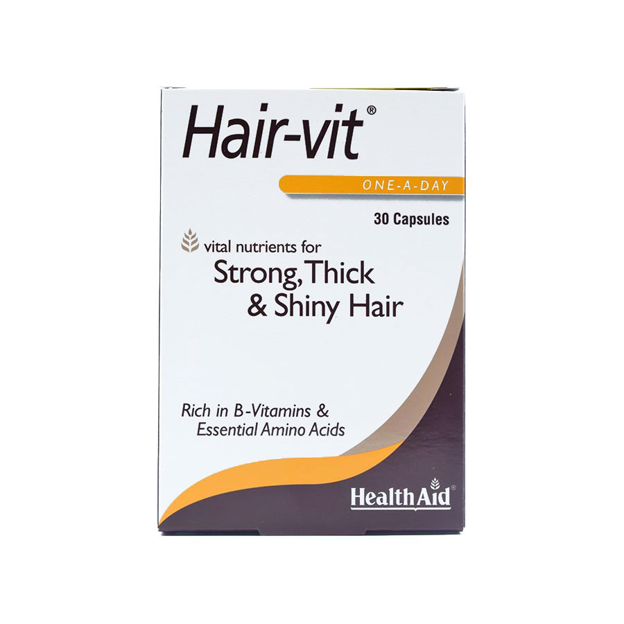 قرص Hairvit تحت لیسانس کمپانی Health Aid حاوی مجموعه ای از ویتامین های گروه B و اسیدهای آمینه ضروری می باشد. مصرف این محصول باعث جلوگیری از ریزش مو، بهبود بافت و افزایش ضخامت مو شده و همچنین سبب بهبود رنگ و درخشندگی مو نیز می شود و در تأمین سلامت مو بسیار مؤثر عمل می کند. ترکیبات موجود در هیرویت به صورت مستقیم و یا غیرمستقیم نقش خود را در سلامت مو ایفا کرده و علاوه بر این می توانند تأثیر یکدیگر را نیز تقویت کنند.