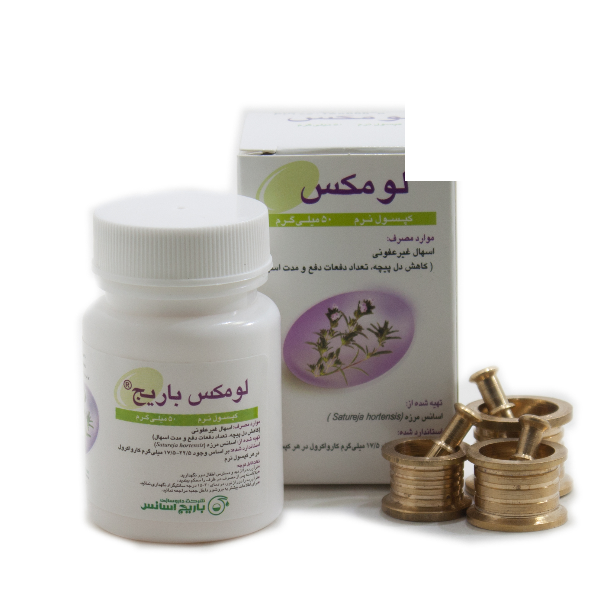 شرکت داروسازی باریج اسانس به منظور درمان اسهال غیرعفونی و کاهش دل پیچه، تعداد دفعات دفع و مدت اسهال محصولی به نام کپسول نرم لومکس باریج ارائه کرده است که از گیاه مرزه تهیه شده است. اسانس مرزه حاوی ترکیباتی است که اثرات ضد اسپاسم و آنتی میکروبیال دارند و به همین دلیل می توان آن را به منظور درمان اسهال های میکروبی نیز مورد استفاده قرار داد.
