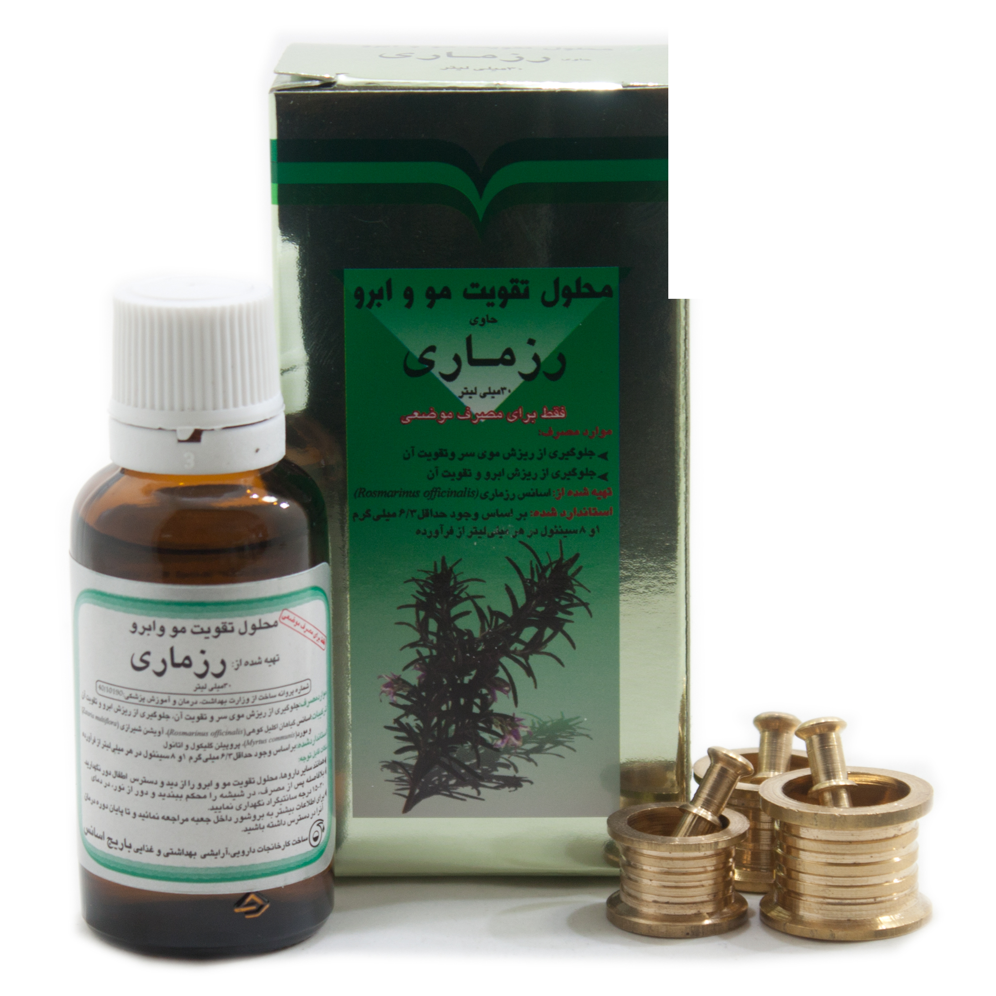 جهت جلوگیری از ریزش و تقویت ابرو نیز به همین صورت ۱ تا ۲ قطره از محلول رزماری باریج را استفاده نمایید.