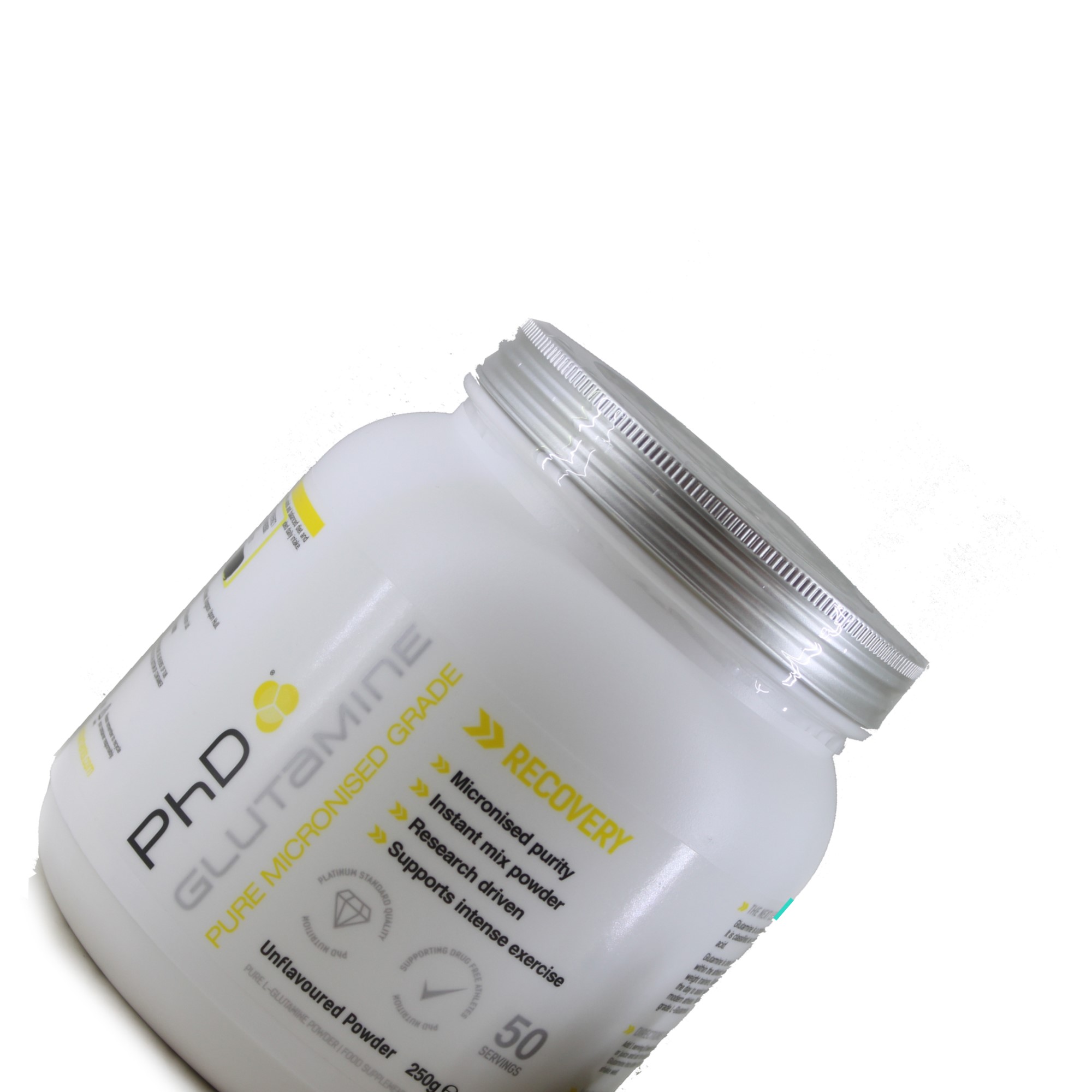 پودر گلوتامین بهمنظور مکملی برای برآورده کردن نیازهای روزمره ورزشکاران دنیای مدرن چندین بار در روز بهکاربرده میشود. PHD Glutamin فقط از ال ـ گلوتامین میکرونیزه شده تهیهشده است و درنتیجه میتوان آن را بهراحتی به تمام نوشیدنیهای پروتئینی بهویژه وی و کازئین افزود.